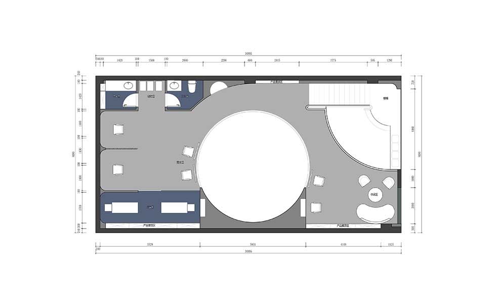 整個空間內充分利用柔和的圓形曲線和環游動線,希望可以給到最放松,最舒適的空間體驗,把原始結構的單層改成雙層,上下疊層做了兩個挑空,增加空間之間的互動性及趣味性