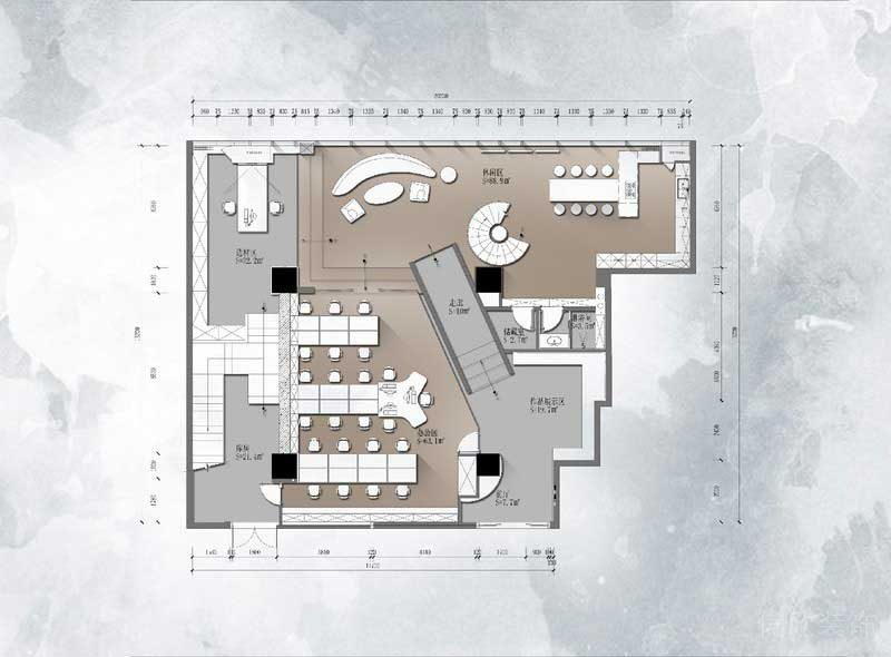 灰色大理石的吧臺和中島一體式的設計,深色原木風和水泥肌理的組合,更具有粗獷,原始的文青氣息,工作之余來上一杯咖啡,一段輕松愉快的下午茶時光,可以使工作效率更好。