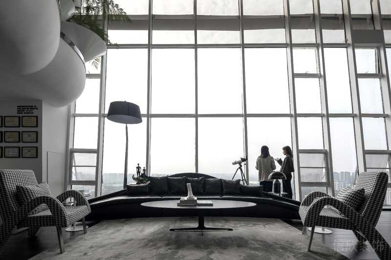 傾斜式的落地窗,視覺上看上去藝術而時尚,夜里坐在半圓弧的沙發(fā)前,就能欣賞到滿城的夜景,看著萬家燈火的通明,和川流不息的人群和車輛,讓人頓時間心情舒暢,思緒開闊。