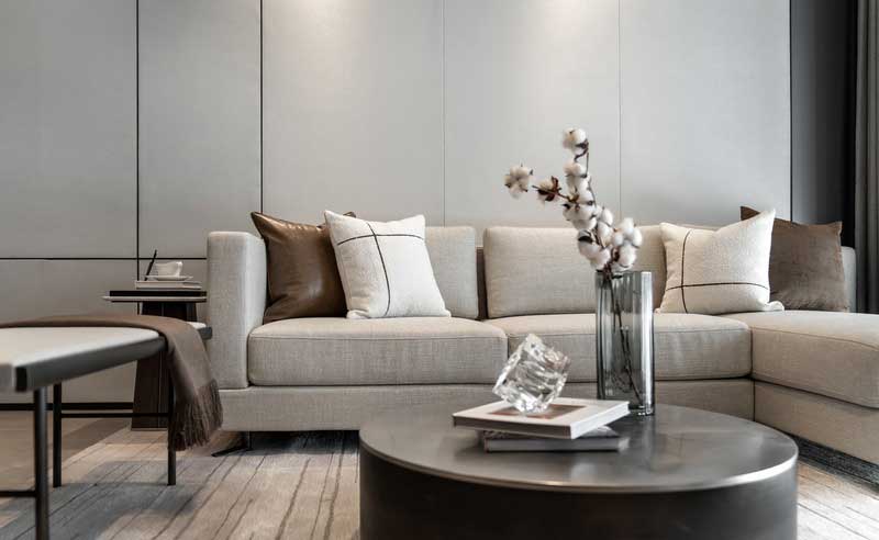 深圳南山現(xiàn)代新中式風(fēng)格家裝裝修沙發(fā)背景墻