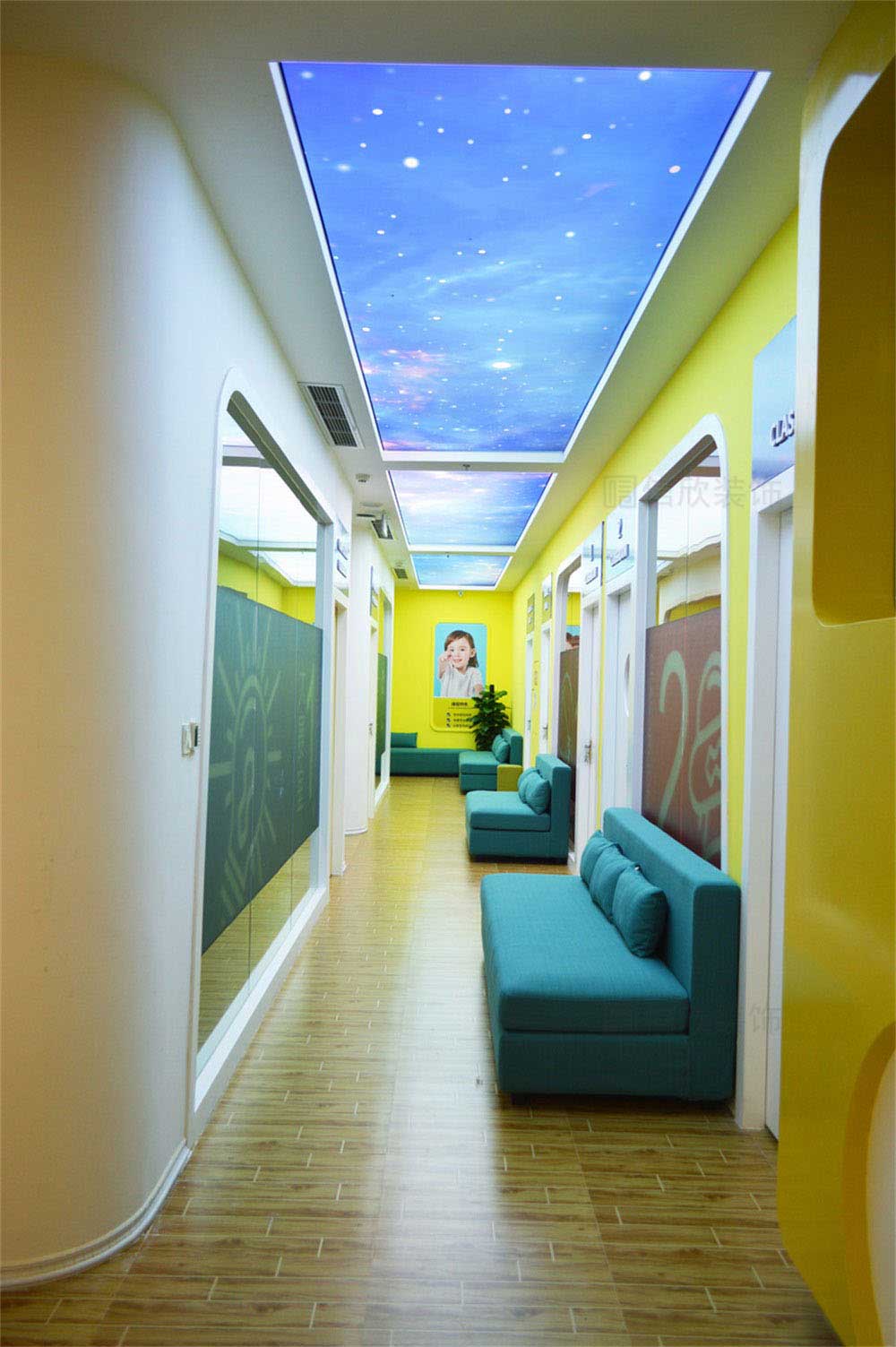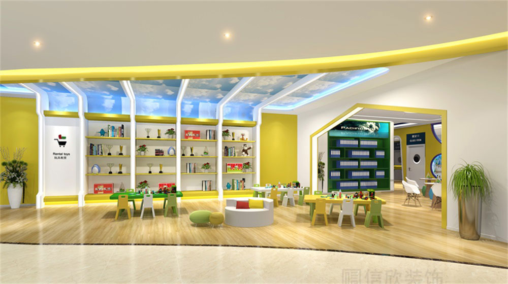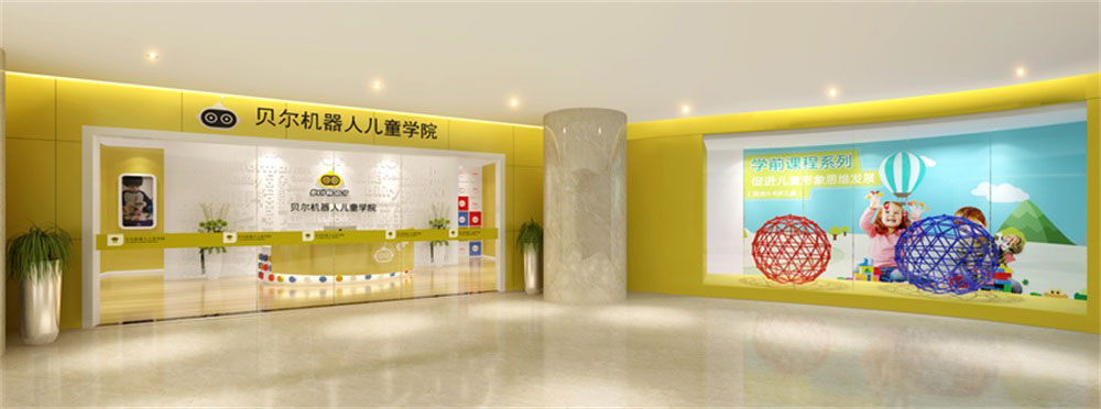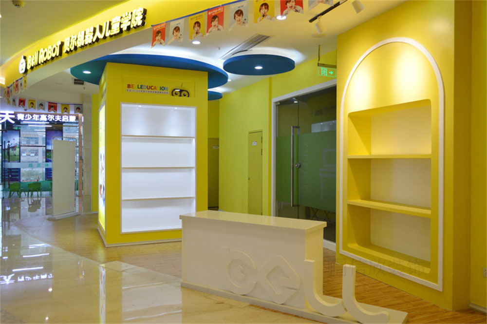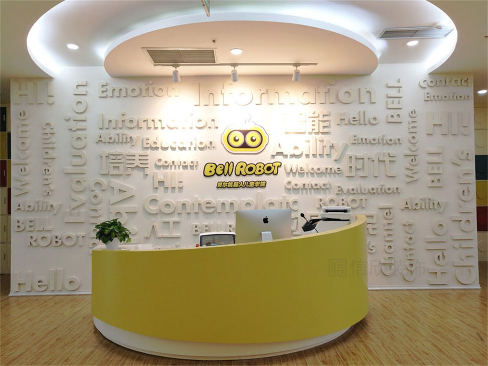 本案位于深圳市寶安區松崗貝爾機器人兒童學院培訓機構,是一所現代科技風的兒童學院裝修設計案例,針對兒童的教育培訓的裝修,在裝修時應多選擇簡潔大氣的簡約裝修風格,避開夸張視覺的另類風格,營造一個輕松明快的良好學習玩耍環境。風格、色彩、照明、裝飾等都要進行合理的裝修設計。