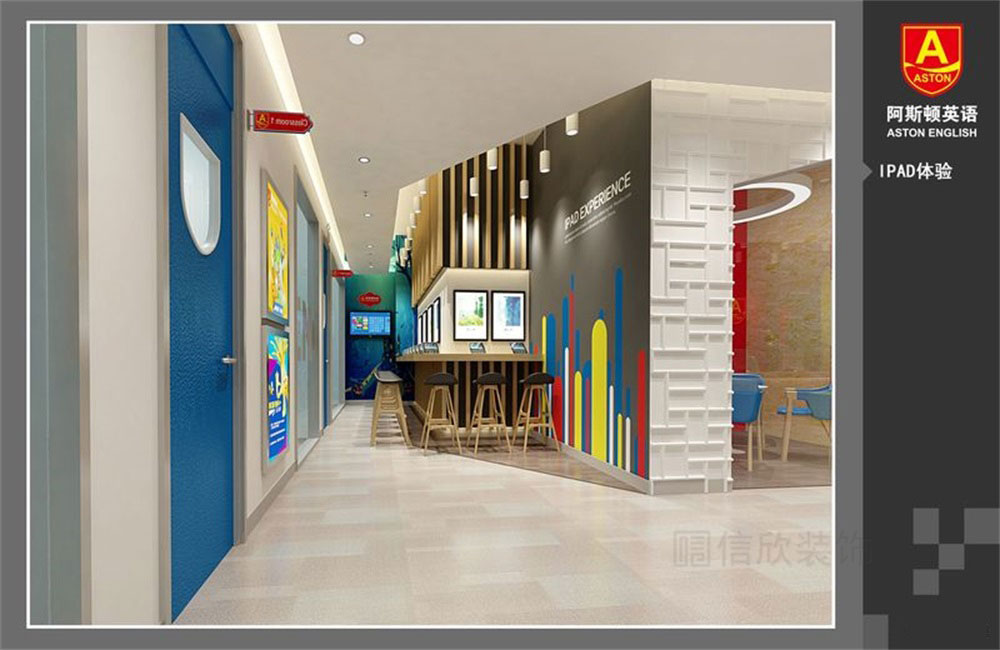 深圳市寶安區西鄉阿斯頓英語全國培訓學校開發區域深入開闊的過道,給人的感覺延伸性好,一目了然的把所有區域盡收眼底,企業文化墻的設計,增加了品牌的效應和對學校文化的認可度。