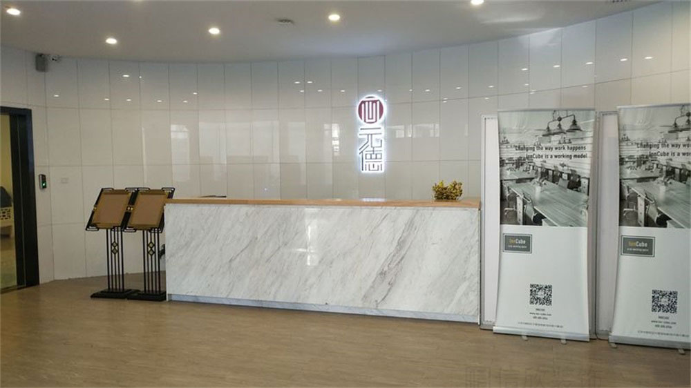 前臺天然大理石的設(shè)計(jì),和地板相呼應(yīng),整體協(xié)調(diào)統(tǒng)一,有一種自然生長的紋理之美,頂面暖光的格柵造型,時(shí)尚中卻不缺乏溫情。