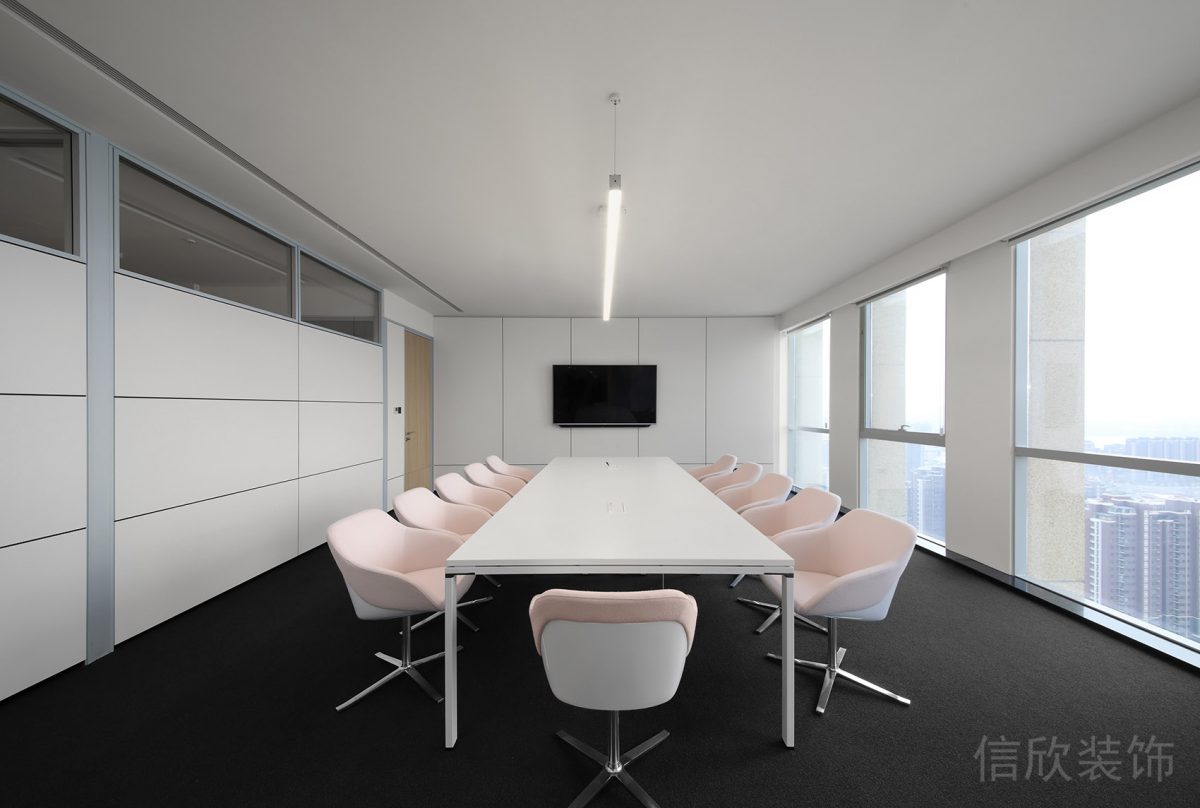 會議室裝修選擇透色亞克力材質的隔斷裝飾板,透明的亞克力隔板增加空間的通透感和現代感。