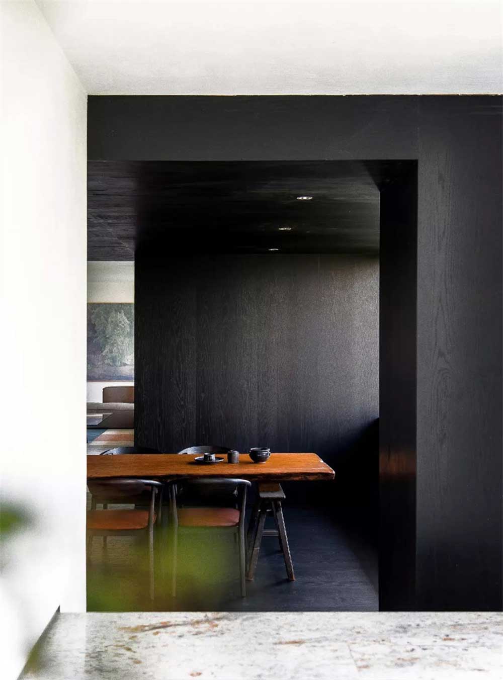黑色和白色搭配的吧臺區,經典的色彩搭配,和整體設計風格的色彩更和諧統一。
