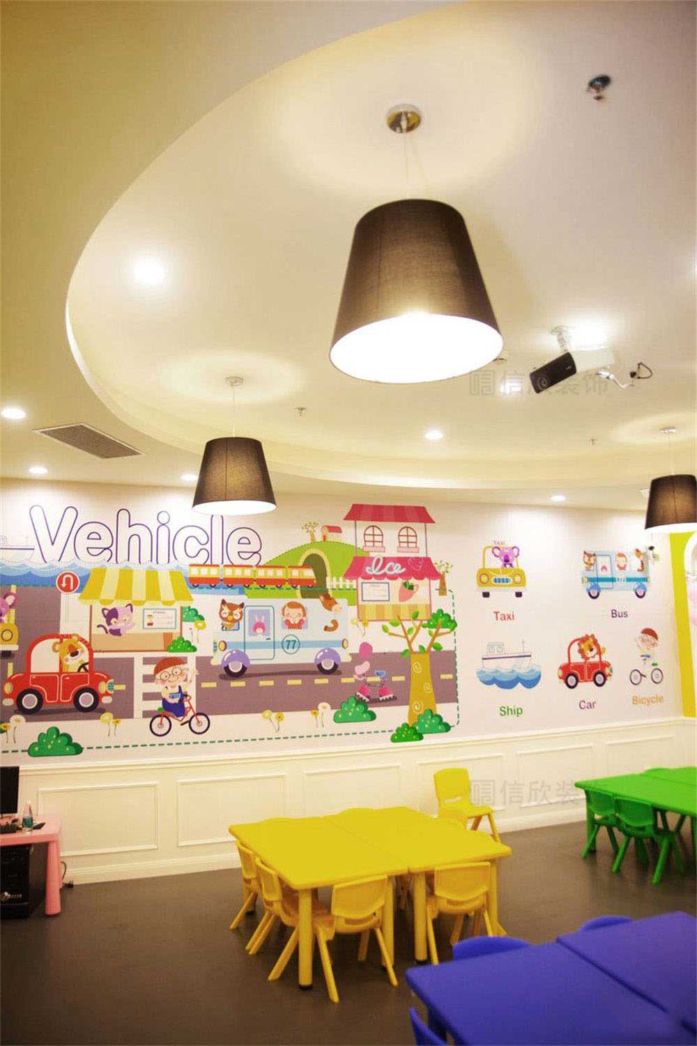 原木色和綠色,用弧線分割的背景墻,看上去猶如清晨破土而出的小草,生機勃勃,有著生命的頑強活力。
