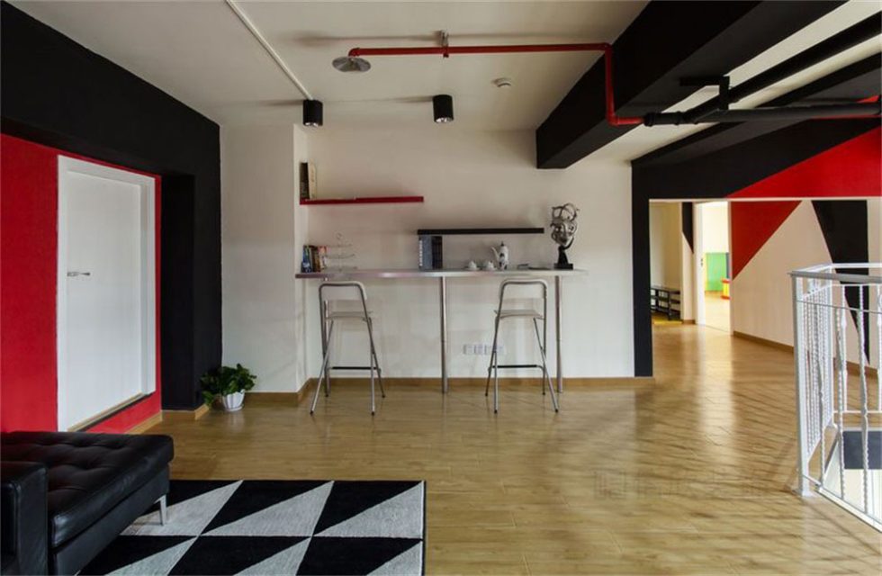 紅色的激情,配上黑色的沙發和黑白相間的地毯,冷色調和暖色調的碰撞,時尚大氣,有種濃厚的藝術氣氛。