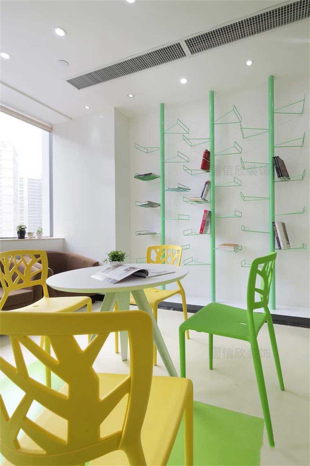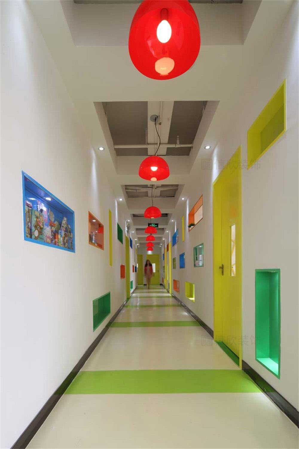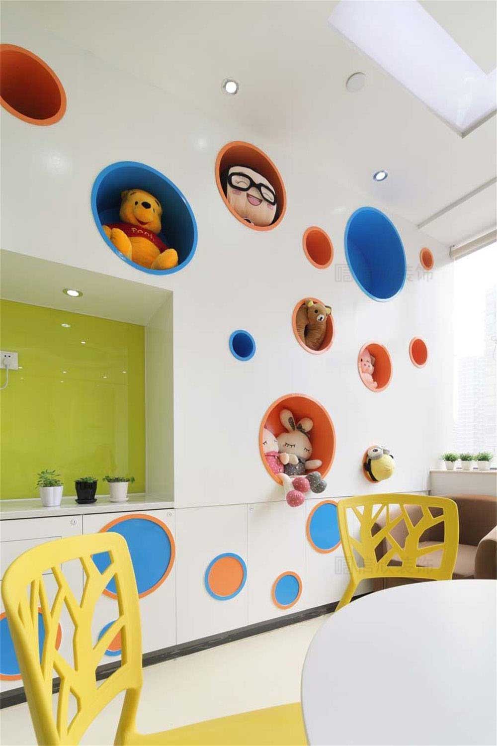 等候區(qū)采用一體式的石膏頂,加上鏤空的造型設(shè)計(jì),如七色花一樣的閃耀,讓孩子對(duì)學(xué)校也充滿了向往和喜愛。