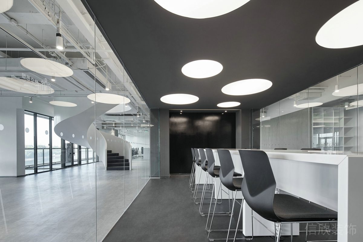 觀景辦公室裝修高腳椅設計白色長桌裝修圖效果