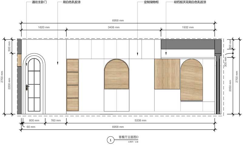 深圳鹽田區三房小戶型家裝裝修平面圖客餐廳立面圖