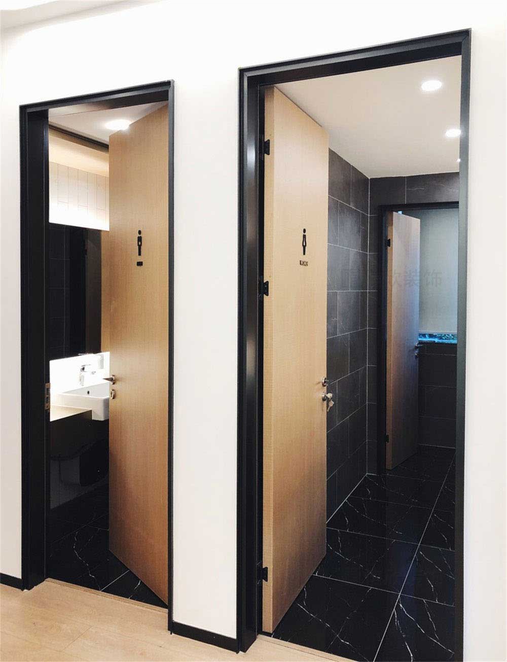 衛生間的設計,才用黑金花地磚和原色木門的結合,看起來深沉內斂,但是又不缺乏檔次和美感。