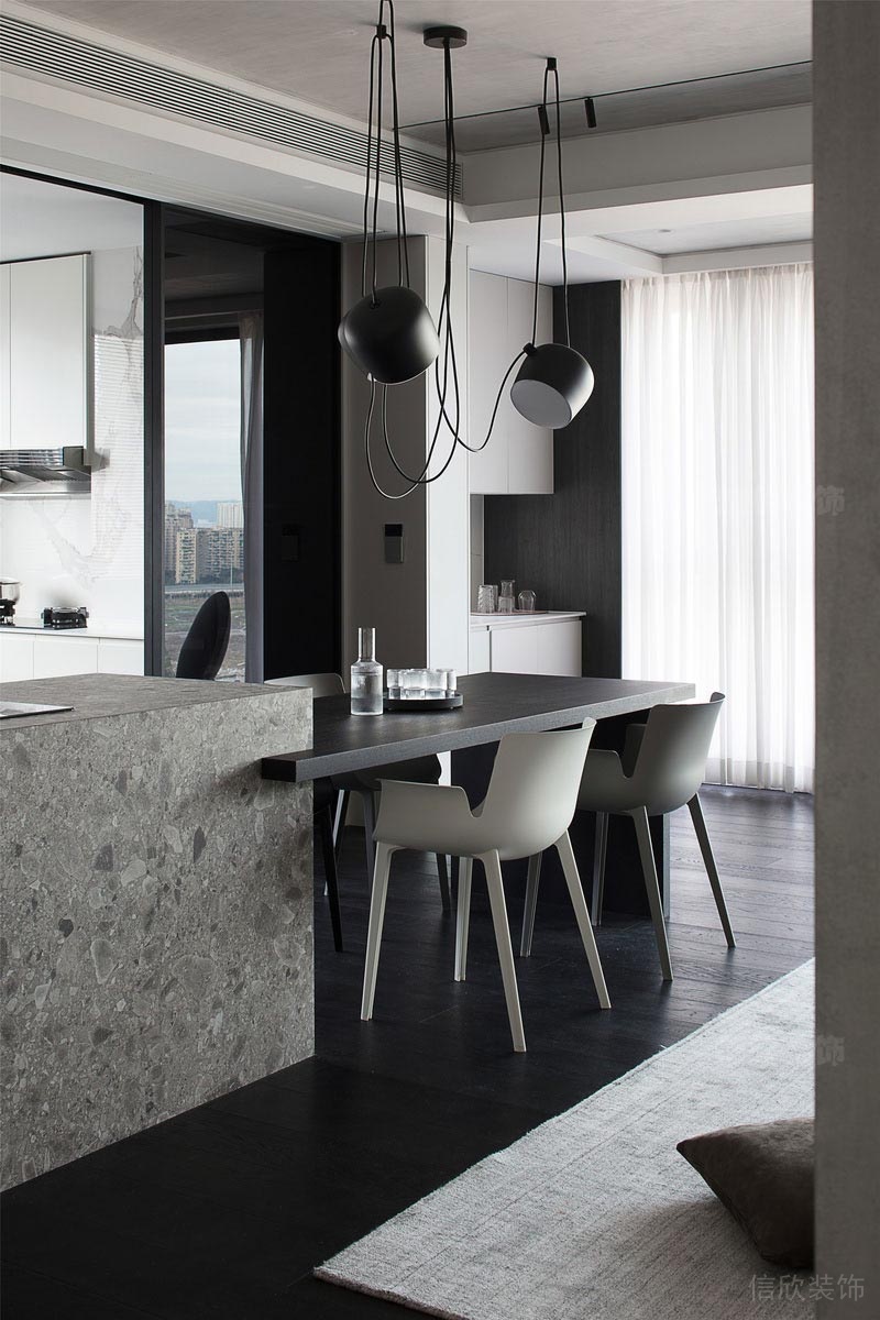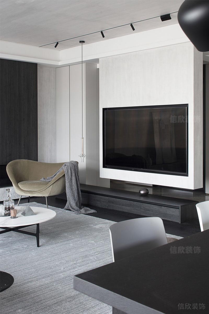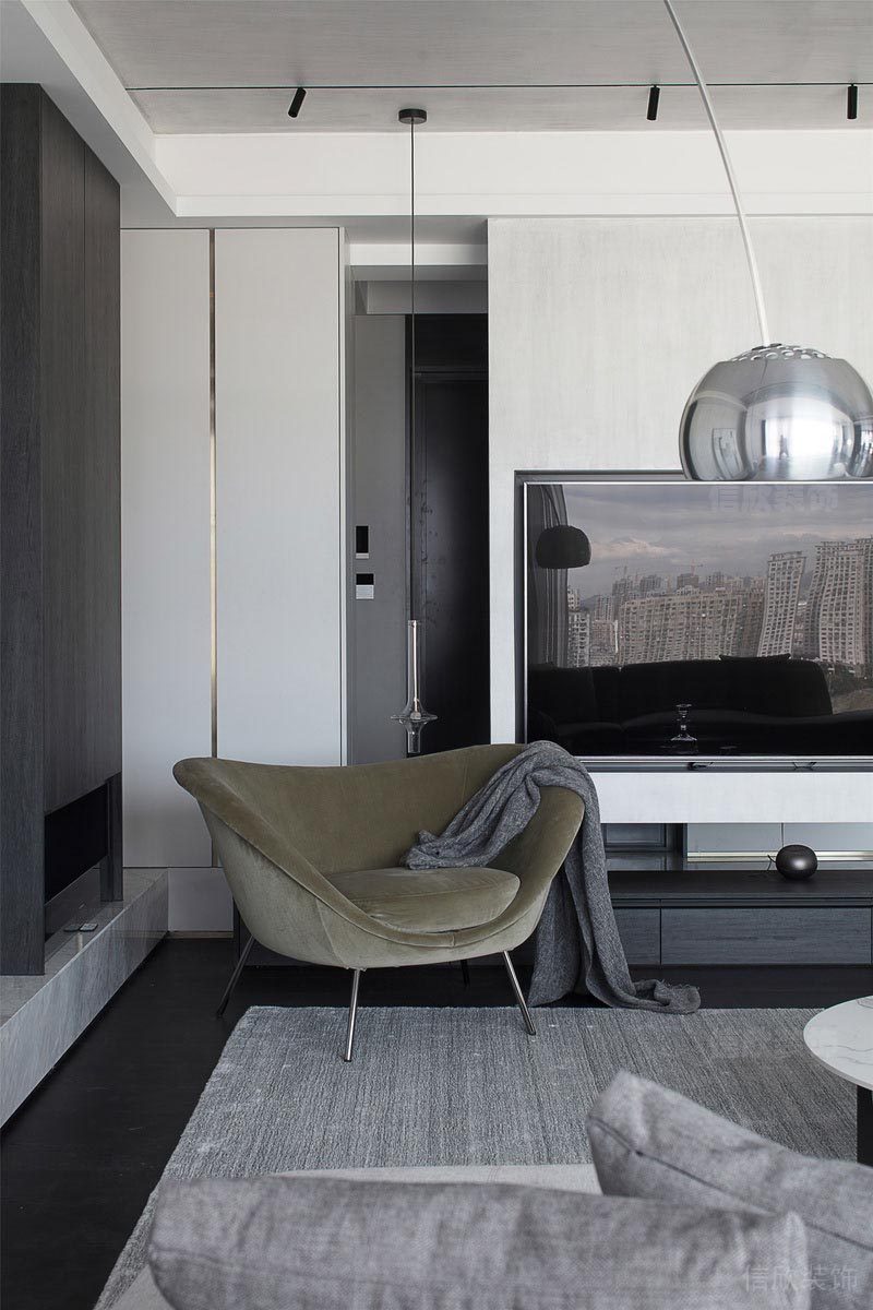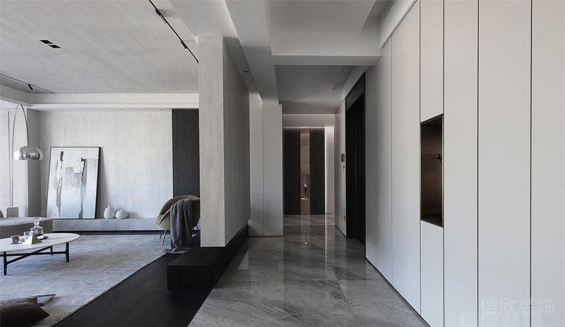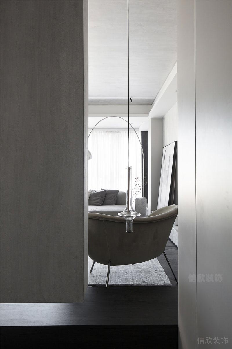 本案位于深圳市南山區(qū)西麗匯城茗院是一個(gè)后現(xiàn)代風(fēng)的黑白灰二手房翻新改造裝修設(shè)計(jì)案例,通過對(duì)形狀輪廓和光影進(jìn)行高度歸納和提煉,利用干凈利落的線條和黑白高反差,塑造強(qiáng)烈的視覺沖擊力。靜謐的黑,與裝置藝術(shù)互映成畫,區(qū)域的斑駁紋理,讓人感知到另一種寧?kù)o的東方美學(xué)。