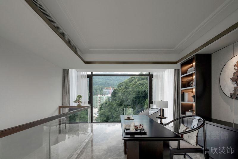 書房的設在樓梯轉角的開放式空間上,既通透又明亮,符合中式設計的特點,采用了古色古香的黑胡桃木書桌的和書桌,讓您靜思閱讀的時候;可以可以細細感受中華文化所獨特的書香氣。