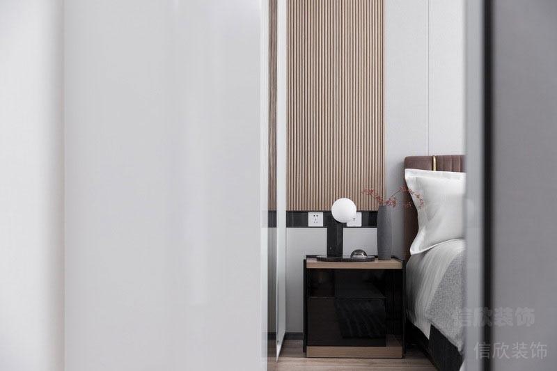 簡約的白色吊頂,線條流暢,造型優(yōu)美的背景墻,溫暖舒適的床,讓您在靜謐中無憂無慮的入夢。