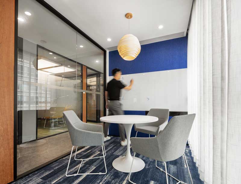 我們的目標是讓傳統辦公室轉變為一個吸引年輕人的環境,將更多工作方式的選擇權交還于員工,提供更有效的支持。豐富多樣的小型討論間,溫馨、自由、隱私,不僅革新了工作方式,也給予了整個辦公空間有趣的節奏感