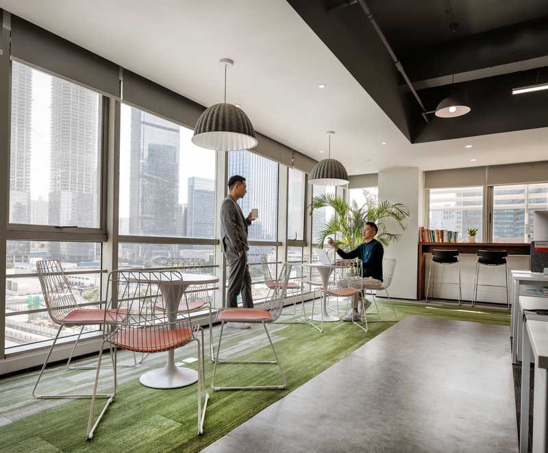 無論在開放的工位或是休閑區,城市景觀一覽無余,以模糊邊界的姿態讓室內空間與自然環境交融,提供了良好的采光及視野,給予了工作生活舒適的視覺體驗。