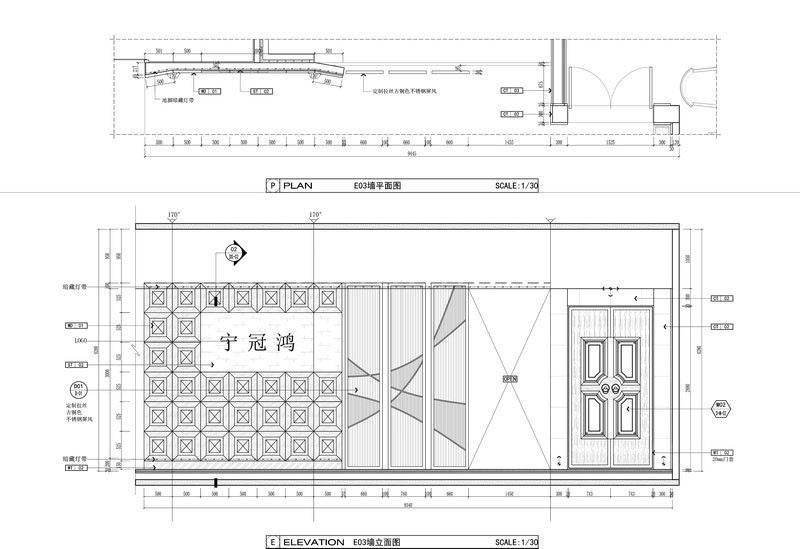 深圳南山現代中式風格辦公室—形象墻立面圖