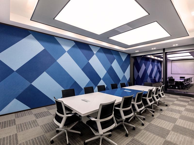 寶石藍色調的藝術雕花門板將過去和現在銜接了起來,表現出公司的企業底蘊跟時代發展性,讓人在門外也能感受到公司的特性。