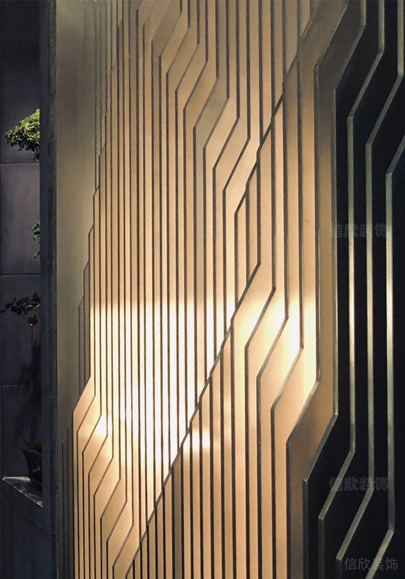 深淺木色鋁扁通相互交錯,居中對稱,在統一中有變化。